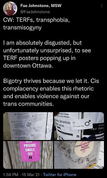 Roback’s follow-up piece about the problem of Canadian women thinking for themselves, “Canada’s Capital Fights Back Against Anti-Trans Hate with Counter Postering Campaign,” was posted by CAHN on April 21.